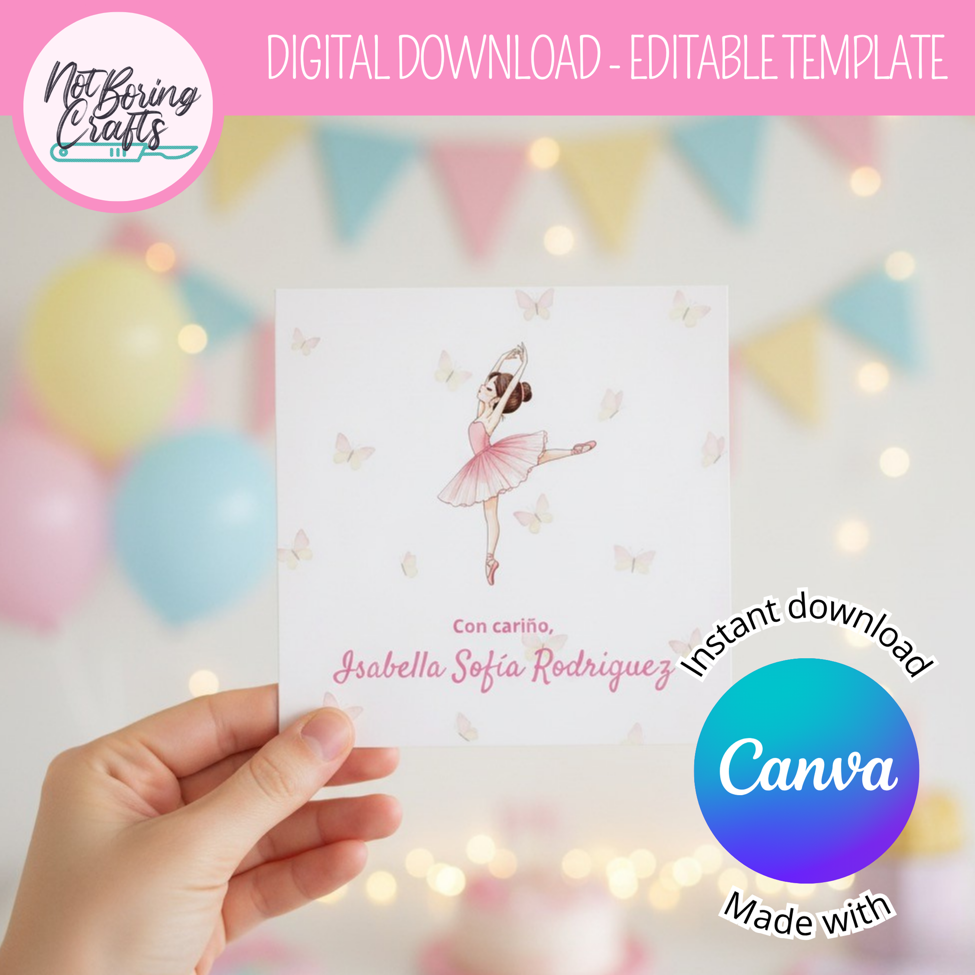 This ballerina gift card combines elegance and personalization, ideal for both experienced and beginner crafters. Designed with premium images, it's print-ready and offers a high-quality finish that enhances any gift. Its delicate design adds a sophisticated and unique touch to your gifts, making every detail stand out with professional style.